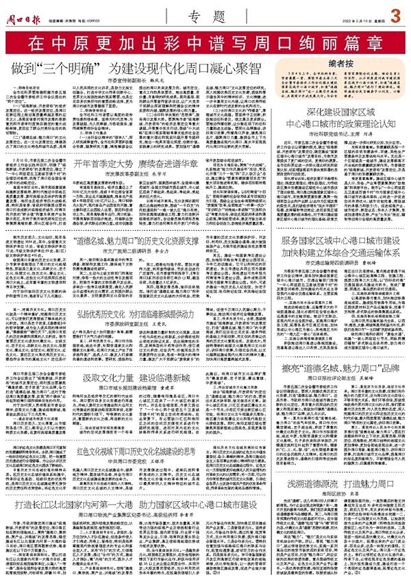 先说“道德”。这几年周口好人好事不断涌现。为什么会出现这种现象?其一,离不开党的教育与培养。我们党历来高度重视道德教育与品德修养。其二,与周口拥有深厚的传统文化根基密不可分。在中国传统文化里,“道德”包括“道”与“德”两项内容。伏羲文化是“道德”思想的根源,而伏羲文化的根在周口。
