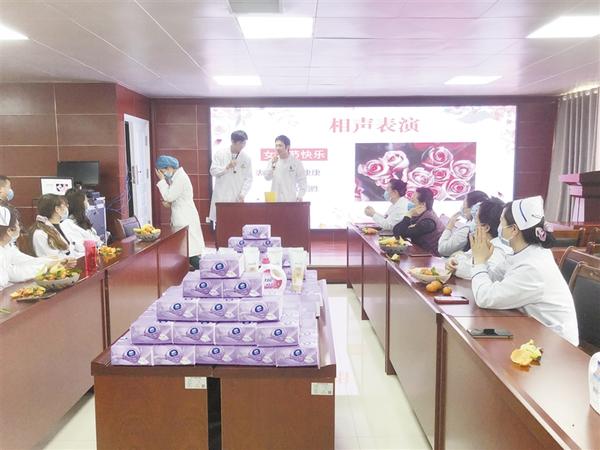 3月7日下午,周口眼科医院举办“三八节”近视防控科普知识联欢会。活动包括有奖问答、相声、朗诵、歌曲等内容,还穿插了猜谜语等趣味游戏,充满了趣味性、娱乐性与协作性,既有个人技能的展示,又有集体的默契考验,现场欢笑声不绝于耳。