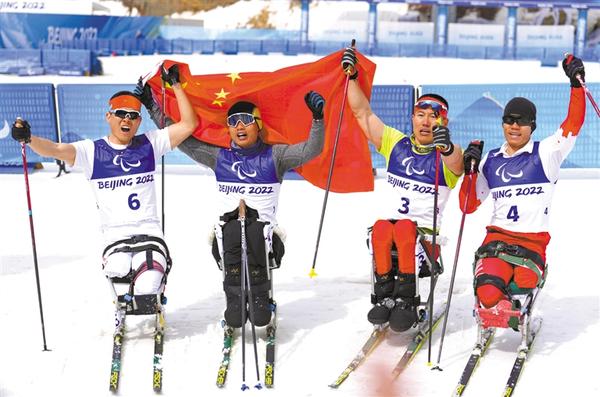 当日,北京2022年冬残奥会残奥越野滑雪男子短距离(坐姿)决赛在河北张家口国家冬季两项中心举行。新华社记者 胡虎虎 摄