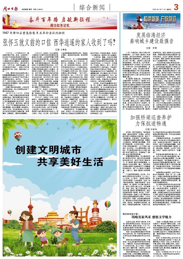3月1日施行的《周口市港口和航道条例》(以下简称《条例》)的颁布实施,是打造中原港城、实现周口高质量发展的重要举措,是周口发展史上的一件大事。《条例》从港口基础设施建设、港口安全、生产经营、航道通畅等多个方面做了全方位的规范,为周口进一步打造临港新城、发展临港经济、实现“变边缘为前沿”的高质量发展提供了有力的法治保障,对周口实现市委五届二次全会提出的建设国家区域中心港口城市的目标有着重大意义。