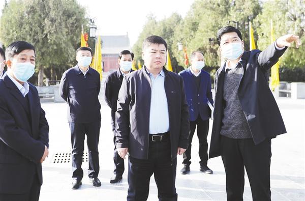 李刚一行实地查看太清宫景区和中华李氏文化园,详细了解老子庙会筹备情况,重点听取庙会期间安全保障和疫情防控措施部署情况汇报(如图)。