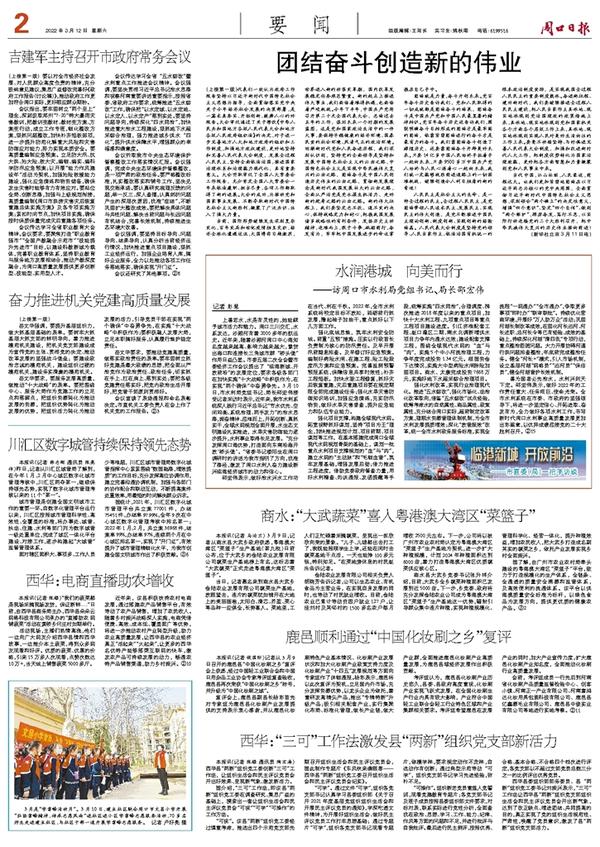 善为国者必先治水,水利兴则天下定。邵宏伟表示,做好2022年的工作责任重大、任务艰巨、使命光荣。全市水利系统在市委、市政府的坚强领导下,将进一步坚定信心、开拓进取、奋发有为,全力做好各项水利工作,书写新时代周口水利事业高质量发展更加出彩篇章,以优异成绩迎接党的二十大胜利召开。②15