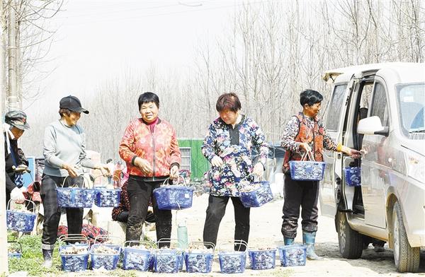 近日,随着气温回升,贾鲁河畔的周口硕博林下经济赤松茸种植示范基地种植的230亩大球盖菇(又叫赤松茸)迎来高产季节,每天采摘量1万多斤。这些由回收麦秸秆做辅料培育出的大球盖菇,色泽艳丽、肉质细嫩、营养丰富、香味浓郁,可与野生松茸相媲美,富含多种人体必需的氨基酸及维生素。目前,这些周口产的鲜美的大球盖菇集中销往北京、上海、广州等地,很受欢迎。图为女工们正在将采摘的大球盖菇装车。记者 梁照曾 摄