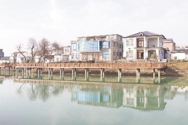 空院后面紧临的是一处天然坑塘和一片老槐树、桐树林,最大的一颗老树已经有近百年的历史,雨水冲刷形成的沟壑曲折蜿蜒,沟内生长着一片绿竹,竹叶在春风中发出沙沙的声响,沟底是一层野生的绿植,叫不出名字的紫的、红的和黄的小花点缀其间,曲径通幽处,花香自芬芳的感觉油然而生。周庄镇党委副书记刘晓敏说:“现在自然景观已经很少了,特别是那么大面积的更少,通过修建廊道、亭子,把那里打造成一个保留自然风貌的游园,与后面紧临的千里绿色通道相连接,形成水美岸绿,春有花,夏有荫,秋有果,冬有绿的群众乐园。”村庄里面的街道上,一台小型挖掘机正在对街道两边高低不平的地面进行平整,几名工人在平整好的地面上垒花墙。一位工人一边干活一边说道:“原来这些地方都浪费了,现在垒起来,在花墙里面种上菜、栽上花草多好看呀!”
