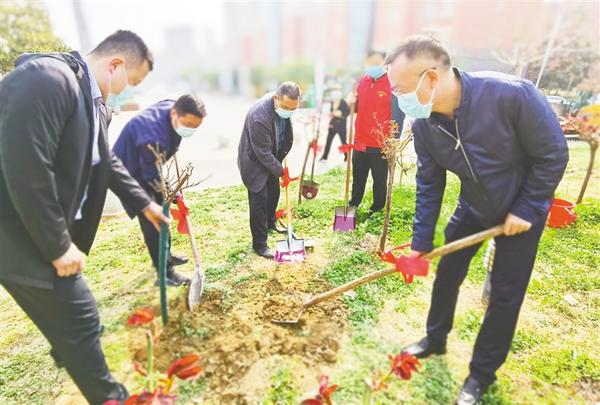 3月12日上午,文昌办事处中原社区联合市行政服务中心工作人员、人大代表、社区干部、环保志愿者和部分居民在中原社区组织开展了植树活动。记者 姬慧洋 通讯员 姬祥 摄