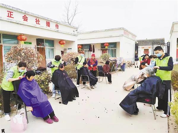 为大力弘扬雷锋精神,倡导时代新风正气,近日,示范区举行2022年“新时代文明实践推动周”暨“学雷锋志愿服务月”启动仪式,区直各单位百余名志愿者参加。图为志愿者为辖区居民义务理发。 记者 姬慧洋 通讯员张超 摄