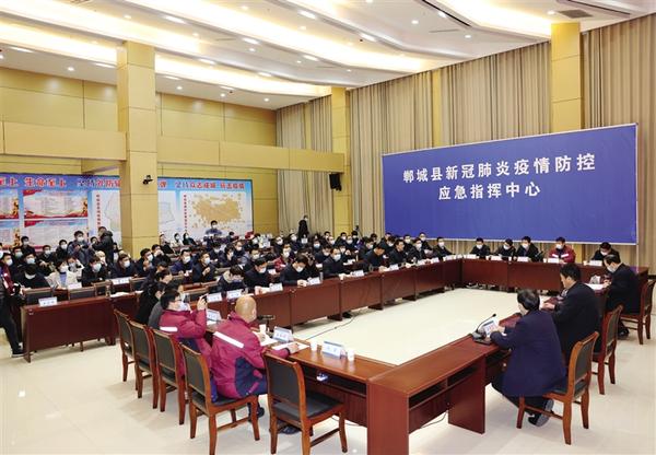 “人民至上,生命至上,疫情面前无小事。”郸城县始终坚持县委书记和县长任“双组长”的疫情防控指挥体系,制定出台《郸城县疫情防控指挥部常态化防控组织架构和工作制度》,成立郸城县疫情防控应急指挥中心(如图),设立“一办五部十三专班”,建立了稳定高效的疫情防控指挥体系。