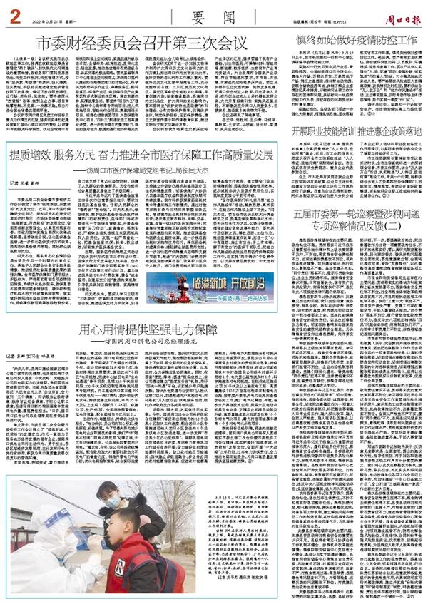新的目标已经明确,前进的战鼓已经擂响。国网周口供电公司将深入贯彻落实市委五届二次全会暨市委经济工作会议精神,牢牢把握好“临港新城、开放前沿”发展定位,全面开展“十大战略”三年行动,扛牢电力保供责任,全力推动电网功能提升,为周口高质量发展提供坚强能源支撑。③7