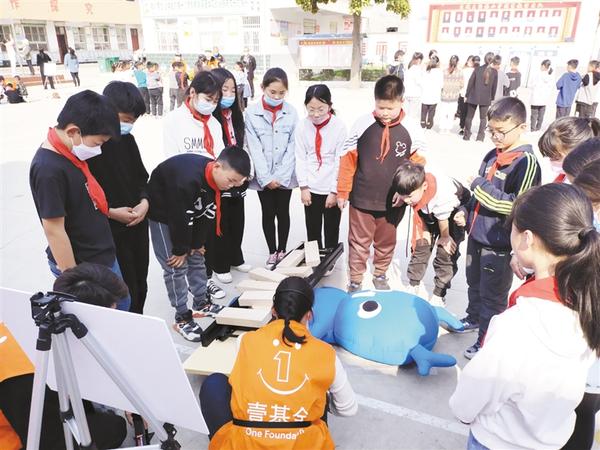 3月11日,由壹基金和险峰公益资助的商水阳城社工服务中心的15名讲师及志愿者走进商水县东城街道办事处王沟桥小学,带领该校的82名孩子举办儿童平安生存训练活动,旨在教孩子学习自救知识、提高他们的生存能力。