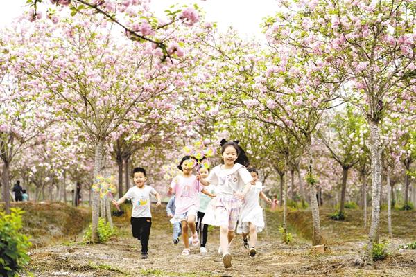 3月19日,在四川省眉山市仁寿县方家镇曲江社区的樱花园里,小朋友们在开心玩耍。春分时节,人们在温暖和煦的春风中踏青、赏花,乐享春日美景。新华社发