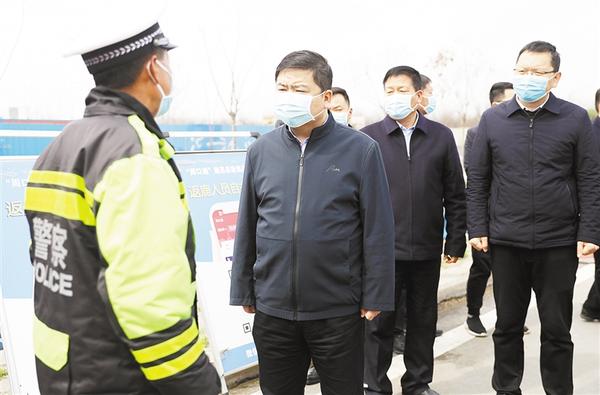在盐洛高速唐集站,李刚强调,要对高速出入口加强管理,迅速排查中高风险地区来返人员情况,切实推动疫情防控措施落实见效。