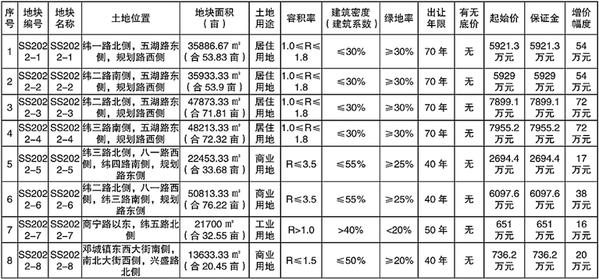 一、拍卖地块的基本情况和规划指标要求(详情见下表)