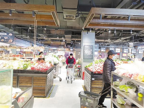 自新冠肺炎疫情发生以来,我市全力保障农产品供给,保障居民生活稳定,确保为抗击疫情提供充足的物资。3月25日,记者在走访中了解到,目前我市蔬菜、果品、肉类等民生商品供应充足,价格总体平稳。图为我市中心城区一大型超市货架上,各类新鲜蔬菜、水果等一应俱全,商品均明码标价、平价销售,可充分满足消费者的购买需求。