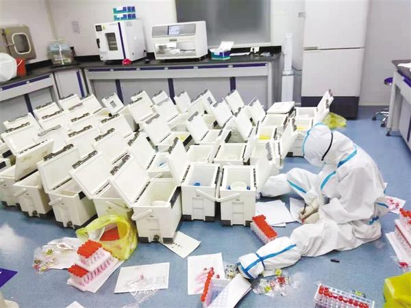 上图:沈丘县全员核酸检测工作开始后,该县疾控中心PCR实验室(新冠病毒检验室)的11名女同志全身心投入到核酸样本的检测中。她们克服常人难以想象的困难,用柔弱的肩膀支撑起了全县核酸检测工作,为抗击疫情奉献着自己的力量。截至3月27日,实验室共收到各核酸采样点转送的核酸标本11.69余万人(份),及时出具报告11.69余万份,核酸检测结果及时出具率100%,数据及时上传率100%。