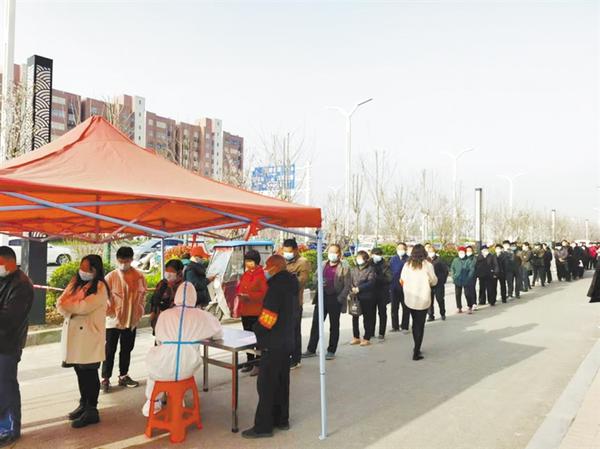 上图:为切实保障居民群众生命安全和身体健康,3月29日,周口港区在全域开展全员核酸检测。 记者 宋风 摄