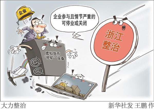 为了有效防范虚拟货币“挖矿”活动盲目无序发展带来的风险隐患,浙江省发展改革委、省司法厅近日决定整治虚拟货币“挖矿”设备,以重点突破带动整体推进。关于整治虚拟货币“挖矿”设备的通知指出,按照有关规定,对虚拟货币“挖矿”设备即行停止使用并依法予以没收。企业参与虚拟货币“挖矿”活动且情节严重的,报请同级政府按照国务院规定的权限责令停业整顿或者关闭。