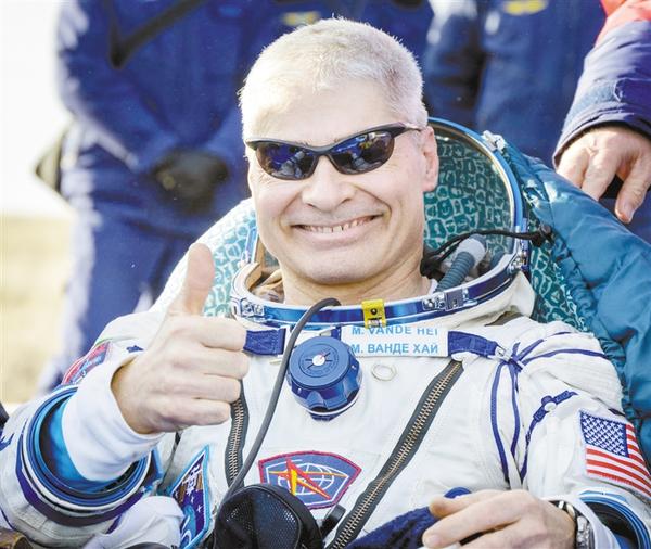 新华社洛杉矶3月30日电(记者 谭晶晶)美国宇航员马克·范德·海与两名俄罗斯宇航员30日乘坐俄罗斯“联盟”飞船从国际空间站返回地球(如图)。范德·海在国际空间站连续停留355天,成为在国际空间站连续停留时间最长的美国宇航员。