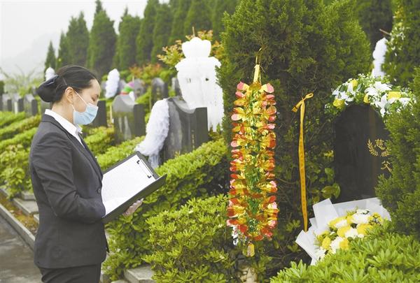 3月30日,“95后”代客祭扫礼仪师游璐在重庆灵安陵园进行代客祭扫。
