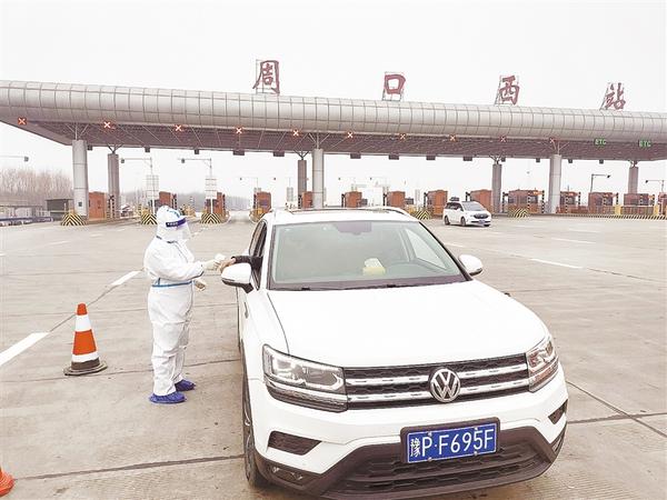 为严防疫情输入,确保中心城区安全,川汇区金海社区卫生服务中心医务人员在周口西高速收费站卡口日夜坚守近5个月,严格对进入车辆上所有人员有序进行测温,查验行程码、健康码,登记相关信息,现场设立临时核酸检测点,及时进行核酸采样和抗原检测。 记者 史书杰 摄