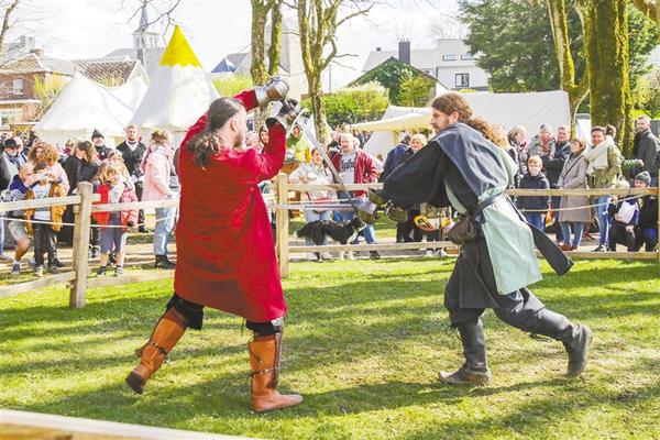 4月9日至10日,比利时列日省小城乌费举办中世纪风情节,通过各色仿古风格的民俗表演、集市和体验活动吸引了大批游客。新华社记者 郑焕松 摄