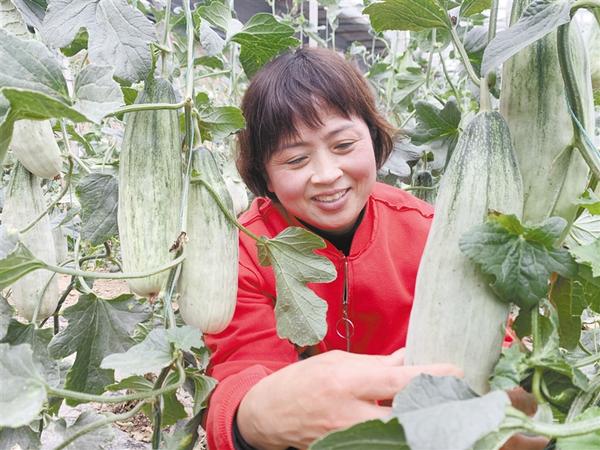 日前,在扶沟县柴岗乡的一个甜瓜基地,连片大棚一字排开,棚内甜瓜饱满结实、香味扑鼻,让人垂涎欲滴。图为瓜农正在采摘成熟的甜瓜,脸上洋溢着丰收的喜悦。