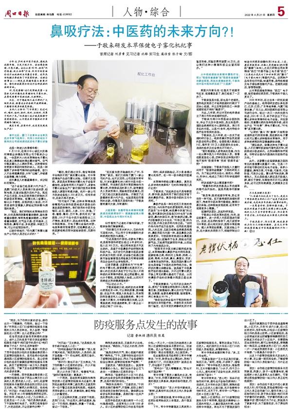 “它还是国内外首创。这款电子雾化机是我带领科研团队经过6年多时间、投入近300万元,经过艰难攻坚才开发出来的,是基于中医鼻吸疗法研制的高科技产品,说不定它代表着中医药发展的未来方向呢!目前,该设备已经通过国家市场监督管理总局备案及河南省保健用品协会的行业审批程序。”