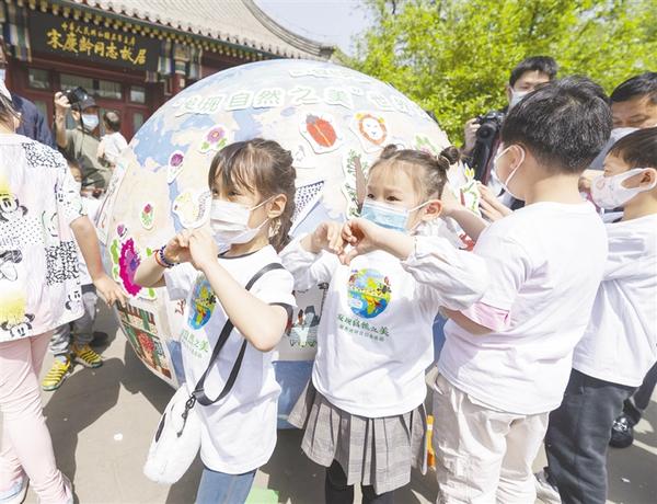 当日,“放飞绿色梦想 保护地球未来”世界地球日公益活动在北京举行。参加活动的小朋友展示自己的绘画作品,并通过唱歌、朗诵等系列活动,旨在带动更多孩子参与到保护地球环境、践行低碳环保生活的实践中来。新华社记者 才扬 摄