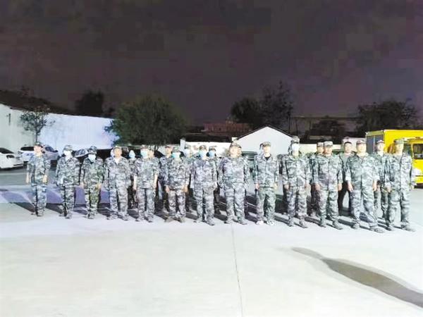 4月24日,项城市应急抢险救灾综合救援中心的抢险队员集结待命,随时准备投入战斗。