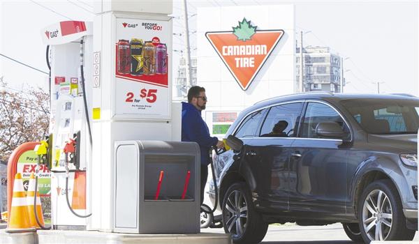 5月8日,一名男子在加拿大多伦多一处加油站为汽车加油。