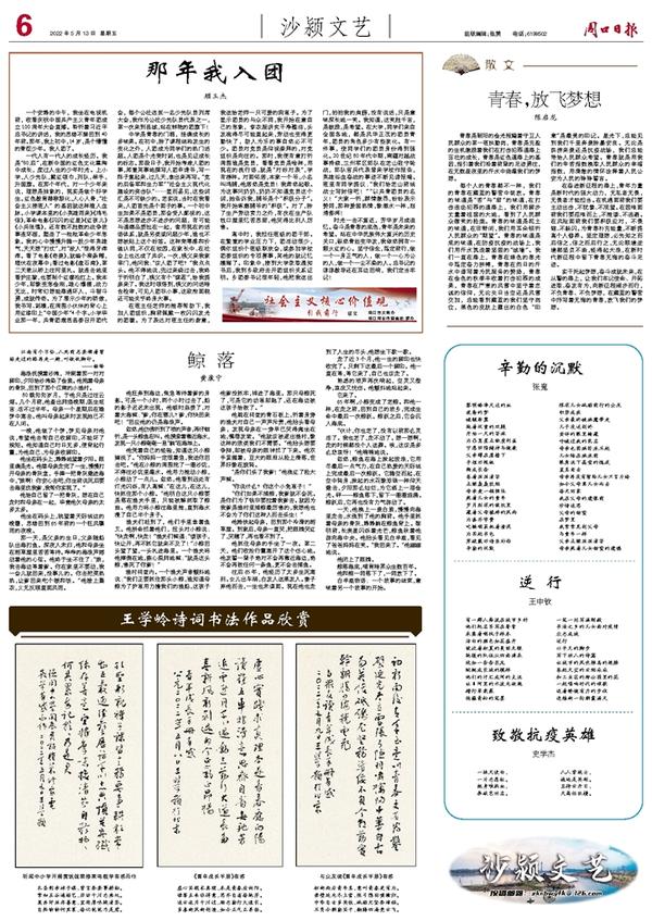 一代人有一代人的成长经历。我是“60后”,在新中国的红色文化熏陶中成长,度过人生的少年时光。上小学,入少先队,戴红领巾,列队,举手,升国旗。在那个年代,对一个少年来说,理想是抽象的,现实是做个好学生。红色教育潜移默化,入心入骨,“社会主义接班人”的基因就这样植入血脉。小学课本里的《小英雄雨来》《鸡毛信》,革命电影《闪闪的红星》《红孩儿》《小兵张嘎》,还有数不胜数的战争故事连环画,塑造了一批批革命少年形象。我的心中慢慢升腾一股少年英雄气,天天想“打仗”,对“敌人”恨得牙痒痒。看了电影《奇袭》,就编个柳条帽,埋伏在夜幕中;看过电影《盘石湾》,第二天敢从桥上往河里扎。就连去地里看护庄稼,也要削个红缨枪扛上。我本少年,却像变形金刚,雄心爆棚,战力无比,时常幻想能路遇坏人,斗智斗勇,成就传奇。为了展示少年的骄傲,我书写、刻模,在周围小伙伴的背心上用红漆印上“中国少年”4个字。小学毕业那一年,共青团鹿邑县委召开团代会,每个公社选派一名少先队员列席大会,我作为公社少先队员代表之一,第一次来到县城,站在鲜艳的团旗下!