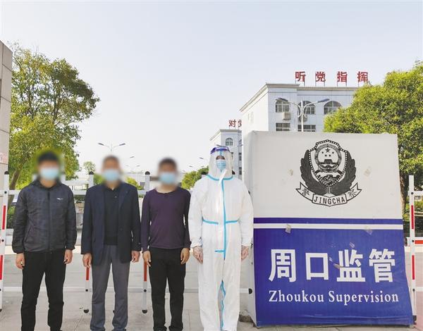 5月9日,四川乐山籍刘某、广东韶关籍余某、山西大同籍胡某三人刑满释放。为保证三人释放后能安全到家,释放前三天,管教民警李建党联系了三人的家属,确定乘车路线及接站时间;联系三地的疫情防控办,了解当地疫情防控形势,并向其社区通报;联系三人的办案单位,确定好领取个人物品的时间和地点,并在释放前一天为三人做了核酸检测。5月9日上午八点钟,外联组高海波大队长穿着防护服,全副武装,带着三人和所内出具的释放证明、羁押证明、户籍证明等手续,到医院领取核酸检测证明,分别联系川汇区分局、经开区分局、港区分局领取三人的手机、身份证等个人物品,为三人发放医用口罩、一次性手套等防疫用品,以及一些水和食品等必要的生活用品后,将三人送到周口高铁站。由于三人手机没电,无法扫码进入高铁站,高海波一边为三人租借充电宝,一边与高铁站工作人员沟通协调,最终帮助三人顺利登上回家的高铁。