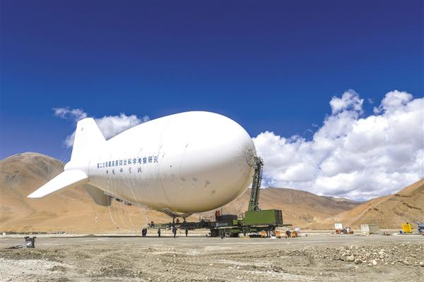 据介绍,执行此次观测任务所使用的浮空艇,是我国自主研发的系留浮空器,长55米、高19米,体积达9060立方米,利用浮升气体的浮力升空,通过地面锚泊设备系缆控制升空和驻空。