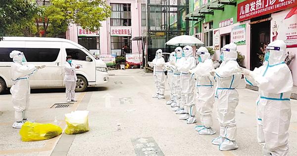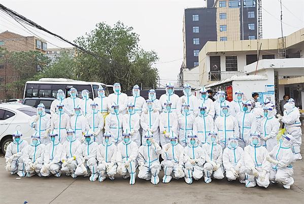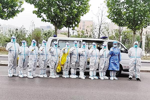 3月23日,太康县出现疫情后,郸城县第四医健集团先后抽调了5批次83名医护人员,组成核酸采样检测队,奔赴太康抗疫一线紧急支援,圆满完成任务后返郸。经过短暂的休整,刚刚解除隔离,5月5日,他们又与同事一起转战本县疫情防控隔离点、城区核酸采集点、乡镇核酸采集点、核酸检测实验室、转运专班、方舱实验室等各大战场。