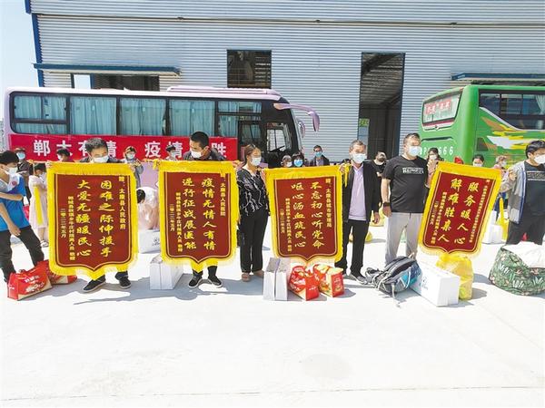5月20日上午,郸城县82名解除隔离人员在返程时,向太康县城管局送来一面锦旗,表达了对太康县城管局工作人员的感激之情。