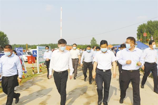 市委副书记、市长、市防汛抗旱指挥部指挥长吉建军,周口市委常委、常务副市长马剑平现场听取防汛工作汇报。