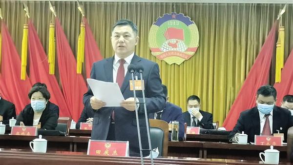 田庆杰代表县委向大会的胜利召开表示热烈祝贺,向出席会议的全体政协委员致以亲切问候(如图)。他指出,过去的五年,是全县上下攻坚克难、砥砺奋进的五年,也是沈丘县发展成果丰硕、令人自豪的五年。特别是刚刚过去的2021年,全县统筹疫情防控和经济社会发展,实现了“十四五”良好开局。一年来,全县坚定不移把习近平新时代中国特色社会主义思想作为总遵循、总纲领,认真落实“第一议题”制度,学深悟透习近平总书记系列重要讲话精神。高质量开展党史学习教育,团结带领全县各级党组织和广大党员干部坚定捍卫“两个确立”,坚决做到“两个维护”。始终坚持“产业兴县、工业强县”,全县地区生产总值完成367.2亿元,县域经济位列全省30强。始终坚持“项目为王”理念,连续3次获得全市重点项目观摩综合评比第一名。凯旺科技在深交所敲钟上市,结束了沈丘没有上市公司的历史。周钢一期一步工程成功点火投产,结束了沈丘乃至周口没有大型重工业的历史。坚持以改革促发展,围绕创建“豫皖两省边际营商环境最优县”,深化“放管服效”改革,推进“标准地+承诺制”改革,凯旺科技、国润HJT电池芯片等一批大项目、好项目实现了拿地即开工。推动医共体建设改革,突出中医药特色,全力打造医共体建设升级版。积极推进乡镇体制机制改革,在全省率先将全县各乡镇7站8所人员整建制下放至乡镇(街道),经验被省委《改革简报》专期、《河南日报》头版刊发推广。城市建设以“五城五化”为目标,实施“十百千”工程,十大主题公园、百座口袋公园、千里生态步道成果显著,“四季有绿、四季有花”的生态城市雏形初现。推进农村“三边四化五美”工程,实现了群众感叹、群众赞叹、群众惊叹的良好效果。“三零”创建暨网格化管理成效彰显,教育基础设施建设、民政救助投入力度持续加大,就业创业质量不断提高,“美好环境、美好家园、美好生活”的幸福愿景加速实现。全县人民抗击疫情,守护平安。去年12月21日和今年5月4日沈丘县2次出现疫情后,在省委、市委坚强领导下,实行平战急转、市县联动、扁平化运作,组建多个专班,由处级领导牵头,做到第一时间“封”、第一时间“找”、第一时间“检”、第一时间“隔”、第一时间“稳”,实现10天内“圈住、封死、扑灭”的工作目标。