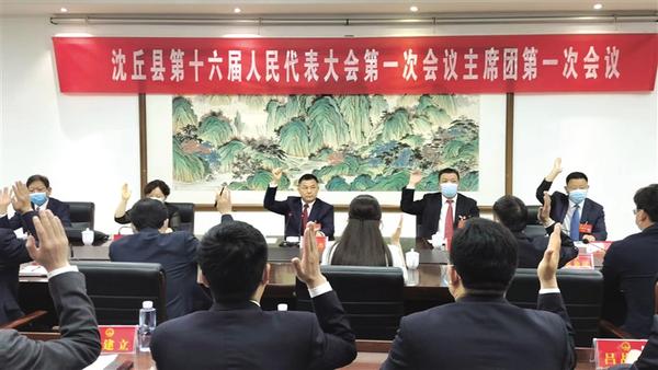 本报讯(记者 高洪驰 文/图)5月25日下午,沈丘县第十六届人民代表大会第一次会议主席团举行第一次会议。县委书记田庆杰主持会议。大会主席团全体成员参加会议。