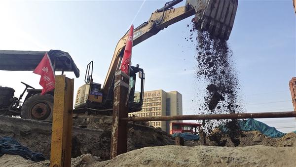 本报讯(记者 张猛 文/图)5月25日上午,西华县雨污分流改造工程施工现场,工人们正在紧张有序作业(如图),确保工程在汛期来临前竣工。