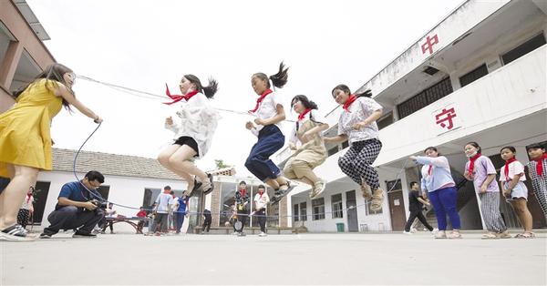 “六一”国际儿童节到来之际,5月31日上午,市青年摄影家协会联合商水县城市投资公司,给商水县姚集镇务台小学的600多名留守儿童送去了一批体育用品,让孩子们度过一个开心的节日。图为孩子们在课间时间开心地做游戏。记者 梁照曾 摄