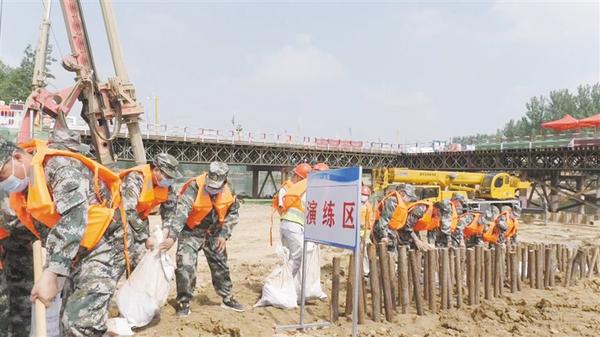 本报讯 (记者 高洪驰 文/图) 5月27日,沈丘县举行2022年防汛综合应急演练,县人武部、县公安局、县消防救援大队等单位组成的应急救援队参加应急演练(如图)。县长、县防汛抗旱指挥部指挥长余长坤宣布演练开始。