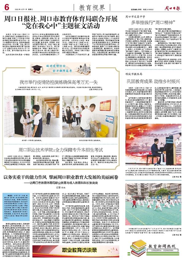 本报讯(记者 朱红) 党的二十大,是我们党进入全面建设社会主义现代化国家、向第二个百年奋斗目标进军新征程的重要时刻召开的一次十分重要的代表大会,是党和国家政治生活中的一件大事。为此,周口日报社联合市教育体育局开展“党在我心中”主题征文活动,时间为6月1日至12月底,参与对象为全市中小学生。