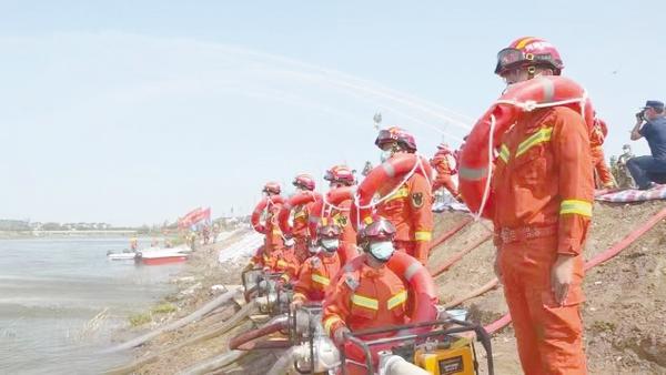 5月30日上午,太康县举行2022年防汛应急综合演练。此次演练内容包括巡堤查险、临水面截渗抢险、河堤漫溢抢险、管涌抢险、水上救生、溺水救护、翻船自救、城市排涝等科目,遵循“以练为主、贴近实战”的原则,进行了全流程推演、全链条实操,提升了防汛抢险救援队伍应对突发汛情、险情的配合协调能力和应急处置能力,达到了检验预案、锻炼队伍、磨合机制、接近实战的目的。 记者 张洪涛 摄