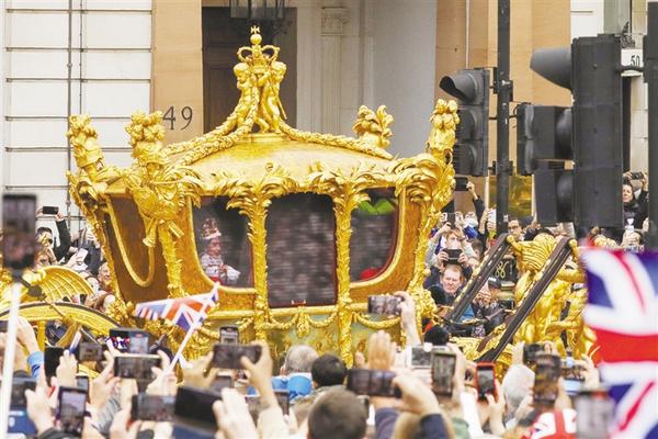 6月5日,人们在英国伦敦观看花车游行。