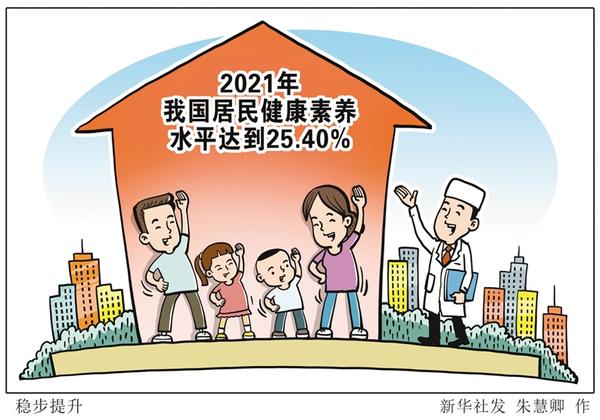 记者6月8日从国家卫生健康委获悉,2021年我国居民健康素养水平达到25.40%,比2020年提高2.25个百分点,继续呈现稳步提升态势。新华社发 朱慧卿 作