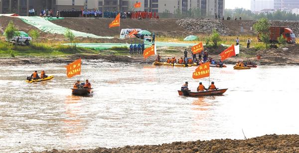 演练模拟贾鲁河扶沟段水位上涨,多处堤防出现管涌、坍塌、漫溢等险情,直接威胁群众生命财产安全。县防汛抗旱指挥部经过会商研判,决定启动防汛Ⅱ级响应,并组织开展抢险救援。演练从巡堤查险、管涌抢险、漫溢抢险、坍塌抢险、水上救援等方面全面检验了该县的防汛应急处置水平。随后,观摩人员现场查看了相关单位的抢险救援车辆、器材和物资的配备情况。