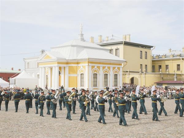 6月12日是俄罗斯国庆日——“俄罗斯日”,军乐队在俄罗斯圣彼得堡演奏乐曲。新华社发