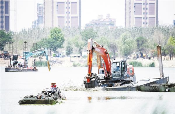 近日,淮阳区古城西北角的龙湖内,几艘清淤船在开展清淤作业,保障和净化龙湖水系生态环境,迎接即将到来的赏荷旅游季。