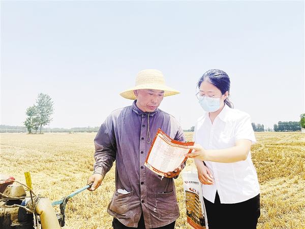 太康农商银行客户经理深入田间地头为农户讲解惠民政策,宣传“丰收贷”,为客户麦收夏播解决资金难题。李秀娟 摄