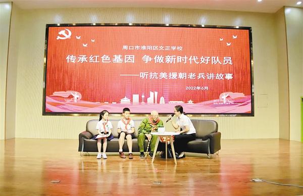 6月15日上午,“传承红色基因,争做新时代好队员——听抗美援朝老兵讲故事”活动走进淮阳文正学校。91岁的抗美援朝老兵叶保良结合自己的从军经历,为同学们讲述他在抗美援朝战争中保家卫国、艰苦奋斗的革命故事,勉励同学们感党恩、跟党走,努力学习,早日成为国家栋梁之材。记者 侯俊豫 摄