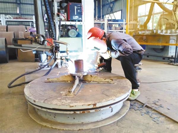 6月16日,太康县开发区一家企业内,一名电焊操作工人正在进行焊接作业。炎炎夏日,他们坚持错峰工作,用辛勤劳作展现了普通劳动者的迷人风采。 记者 张洪涛 摄